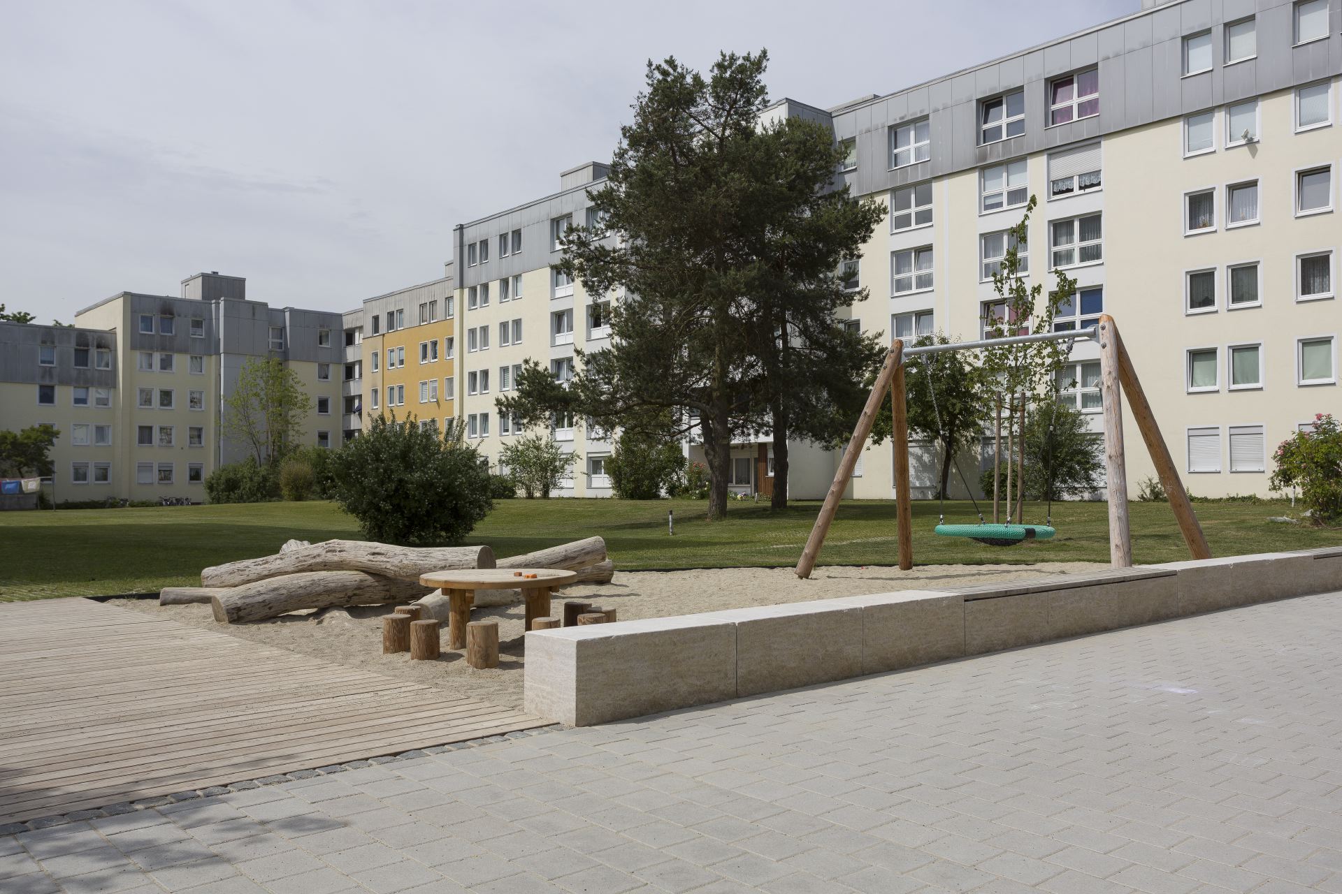 Nach und nach haben wir in den letzten Jahren die Spielplätze nach den neuesten Richtlinien erneuert. Mit modernen, zeitgemäßen Spielgeräten möchten wir für die Kinder die Attraktivität der Spielplätze gestalten, wie zum Beispiel beim Spielplatz Livry-Gargan-Straße 13 / Ecke Balduin-Helm-Straße 24.